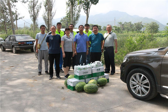 夏日炎炎送清涼,情意暖暖感人心。近日來,三門峽氣溫不斷升高,項(xiàng)目一線施工人員每日頂著炎炎烈日,堅(jiān)守在自己的工作崗位上,兢兢業(yè)業(yè)。為預(yù)防高溫引發(fā)中暑,做好防暑降溫工作,確保廣大員工身體健康和生產(chǎn)安全。8月2日,三門峽市昌通路橋建設(shè)有限責(zé)任公司總經(jīng)理王軍紅帶隊(duì)領(lǐng)有關(guān)領(lǐng)導(dǎo)分別到國(guó)道310南移項(xiàng)目部及省道312項(xiàng)目部開展“防暑降溫送清涼”慰問活動(dòng),慰問堅(jiān)守在項(xiàng)目一線施工干部職工。現(xiàn)場(chǎng)給項(xiàng)目一線施工人員送去了防暑降溫藥品(藿香正氣水、風(fēng)油精、人丹)、礦泉水和西瓜。為奮戰(zhàn)在烈日炎炎下的項(xiàng)目一線施工人員提供“綠色安全保護(hù)傘”,確保職工的身心健康。
